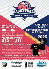 In den Herbsferien 2025 bietet der ASV Rott Basketball ein zweistufiges Herbstcamp in der Rotter Schulturnhalle an. Einsteiger ab können bereits am Montag den 03.11. die Basics erlernen und dann am darauffolgenden Di. 4.11. und Mi. 5.11. das Erlernte weiter ausbauen.