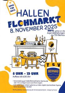 Am Samstag, den 08.11.25 findet wieder der große Hallenflohmarkt des Jugendfördervereins des TSV Bernau statt. In der Sporthalle besteht die Möglichkeit für über 80 Flohmarktler ihre Schätze an den Mann bzw. Frau zu bringen.