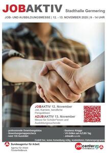 Die JOBAKTIV Germering ist die Messe für Job und Ausbildung. Unternehmen verschiedener Branchen können sich im Rahmen der Messe präsentieren und für ihre aktuellen Job- und Lehrstellenangebote werben. Zudem informieren Arbeitsagentur, Jobcenter und Bildungsträger sowie unsere Netzwerkpartner über berufliche Perspektiven und Unterstützungsmöglichkeiten. Jobwalls, ein Rahmenprogramm mit verschiedenen Aktivelementen sowie praxisnahe Vorträge und Workshops runden das Messeangebot ab.