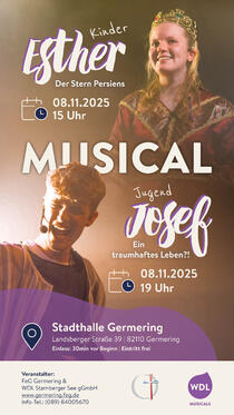 „Josef – ein traumhaftes Leben?!“ ist ein mitreißendes Musical von Alexander Lombardi und Gregor Breier. 70 Jugendliche bringen die Geschichte mit Schauspiel, Tanz und starken Songs auf die Bühne. Aktuell, berührend und voller Hoffnung. Ein Erlebnis für Zuschauer jeden Alters!