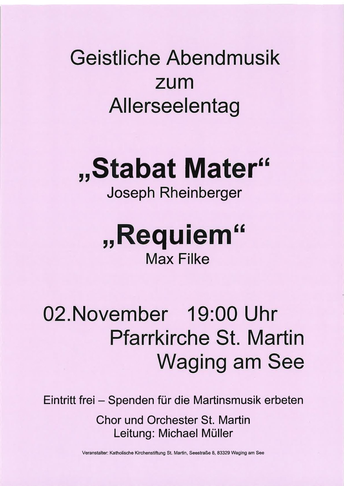 Das Konzert findet am 02. November 2025 um 19 Uhr in der Pfarrkirche St. Martin in Waging am See